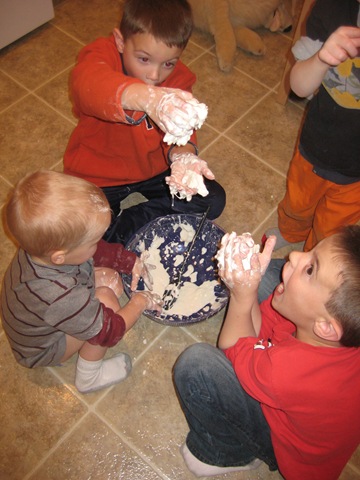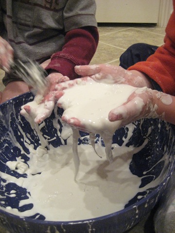 We also shared our science experiment with the boys, it was messy fun!