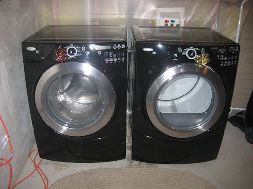 After MANY stained clothes from our washer, two trips from the service men, and much debate, we finally broke down and got a new washer and dryer! However, I never expected it to cost as much as a used car!!!!!!! We Spent over an hour down at Hutch's in Lehi on Main Street (We would highly recommend going, great service!) We learned all about the different makes, models, etc etc... and we ended up with these bad boys. I feel sick every time I think about the price tag but Spencer tells me I need to get over it. Aren't they beautiful!?!?!